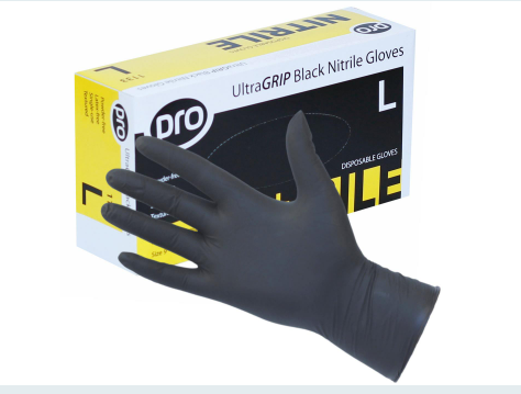 PRO UltraGRIP Black Nitrile Gloves combine strength with comfort. These gloves are latex- and powder-free, with textured fingers to provide excellent grip, even in wet conditions.